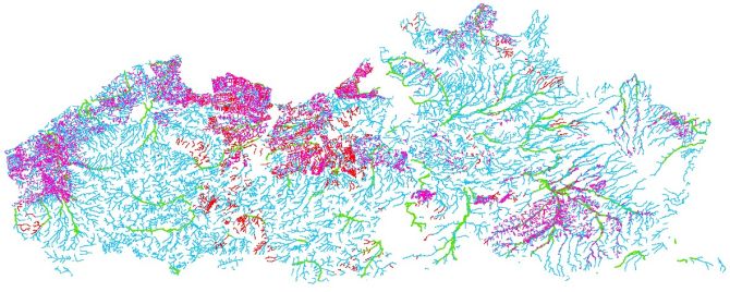 Voorbeeld kaart gerangschikte onbevaarbare waterlopen en publieke grachten